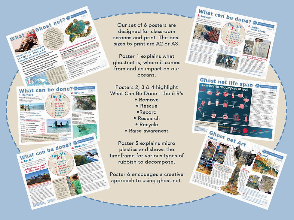 The Educational Package includes 'How To' sheets, instructional videos and educational posters about ghost net and ghost net art.